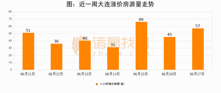 根据诸葛找房数据显示,大连24小时涨价房源量为57套,较06月26日增加12套,环比上涨26.7%。与此同时,涨价房源占比小幅扩大,业主信心有所提升。