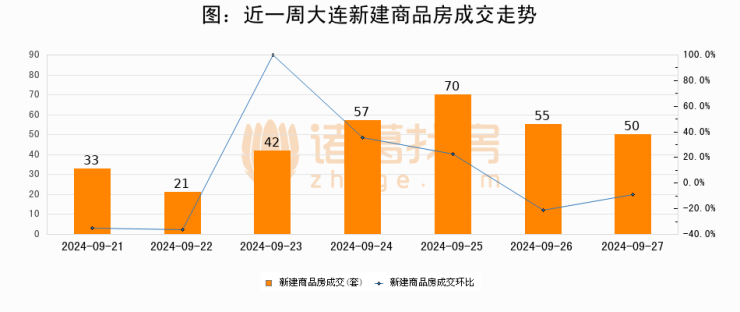 【大连成交日报】09月27日新房成交50套、二手房156套;涨价房源194套
