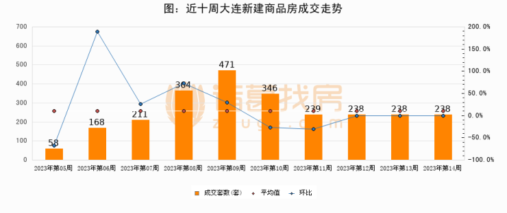 【大连成交周报】第14周新房成交238套,二手房1260套,涨价房源2532套