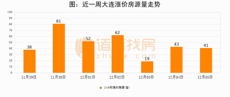 根据诸葛找房数据显示,大连24小时涨价房源量为41套,较12月04日减少2套,环比下降4.7%。与此同时,涨价房源占比小幅回落,对于购房者来说是一个入市窗口期,购房者可抓住时机入市。