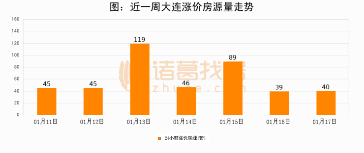 根据诸葛找房数据显示,大连24小时涨价房源量为40套,较01月16日增加1套,环比上涨2.6%。与此同时,涨价房源占比小幅扩大,业主信心有所提升。
