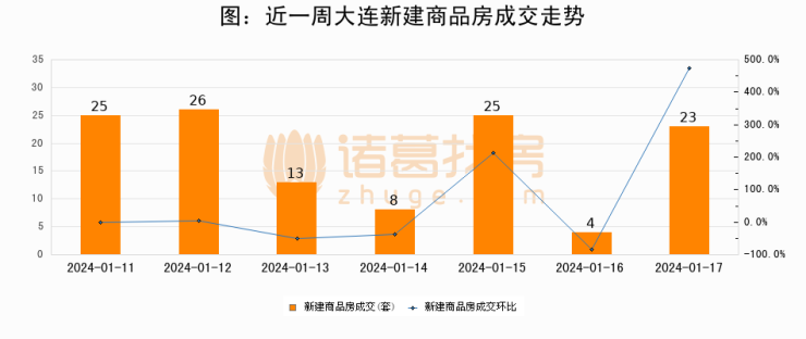 【大连成交日报】01月17日新房成交23套、二手房116套;涨价房源40套