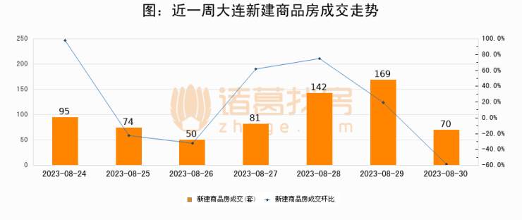 【大连成交日报】08月30日新房成交70套、二手房75套;涨价房源70套