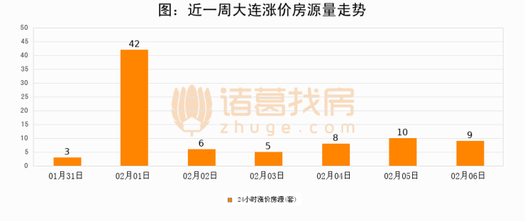 根据诸葛找房数据显示,大连24小时涨价房源量为9套,较02月05日减少1套,环比下降10%。与此同时,涨价房源占比小幅回落,对于购房者来说是一个入市窗口期,购房者可抓住时机入市。