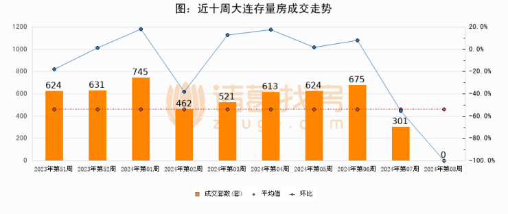存量房方面,第07周大连存量房成交0套,较上周减少301套,环比下降100%。从近十周成交走势来看,周均成交套数为519套,本周低于平均水平100%。