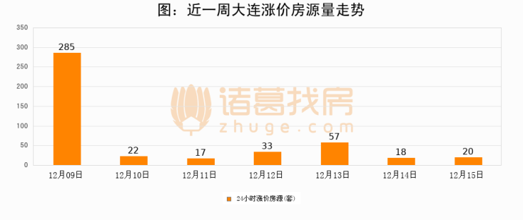 根据诸葛找房数据显示,大连24小时涨价房源量为20套,较12月14日增加2套,环比上涨11.1%。与此同时,涨价房源占比小幅扩大,业主信心有所提升。