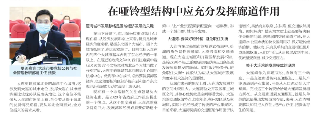 现在有一个非常新的关注点就是沈大经济走廊,是2020年省政府工作报告提出的一个热点。从这个角度来看,大连湾的意义特别巨大,发展湾区经济必须要借助这个湾口,让产业资源要素配置向一起集聚,形成一个城市群、城市带发展。