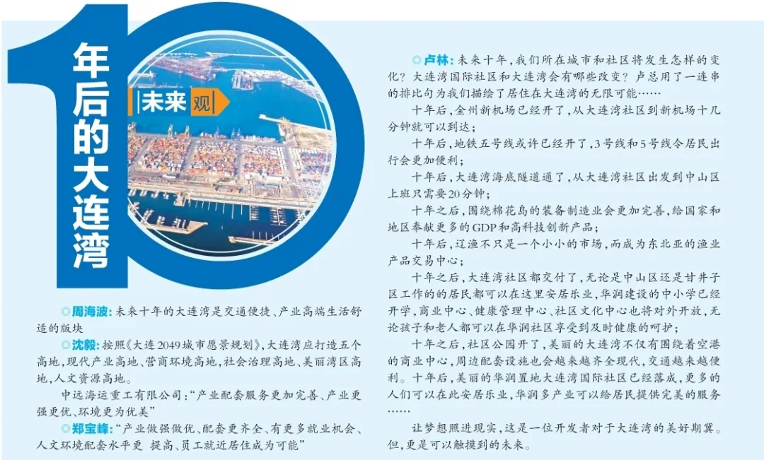 “大连湾应打造五个高地,现代产业高地、营商环境高地、社会治理高地、美丽湾区高地、人文资源高地。”大连日报特别采访的大连市委党校公共与社会管理教研部副主任沈毅如是说。