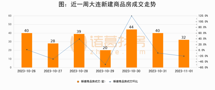 根据大连市住房保障和房屋管理局数据显示,2023年11月01日大连新建商品房成交32套,较昨日减少8套,环比下降20%