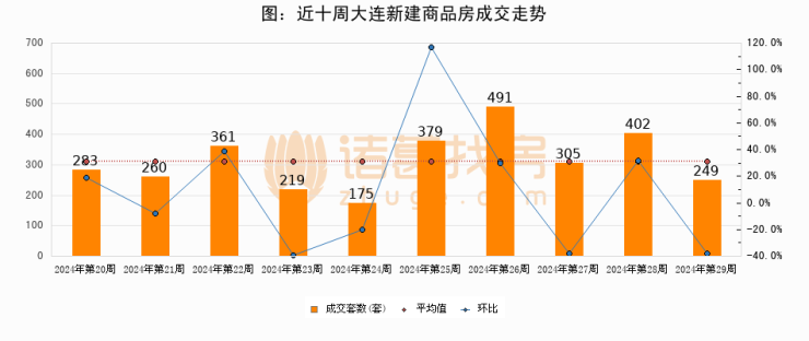 【大连成交周报】第29周新房成交249套,二手房1539套,涨价房源307套