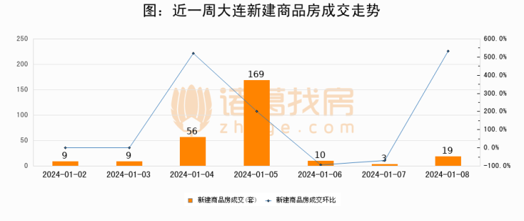 【大连成交日报】01月08日新房成交19套、二手房117套;涨价房源17套
