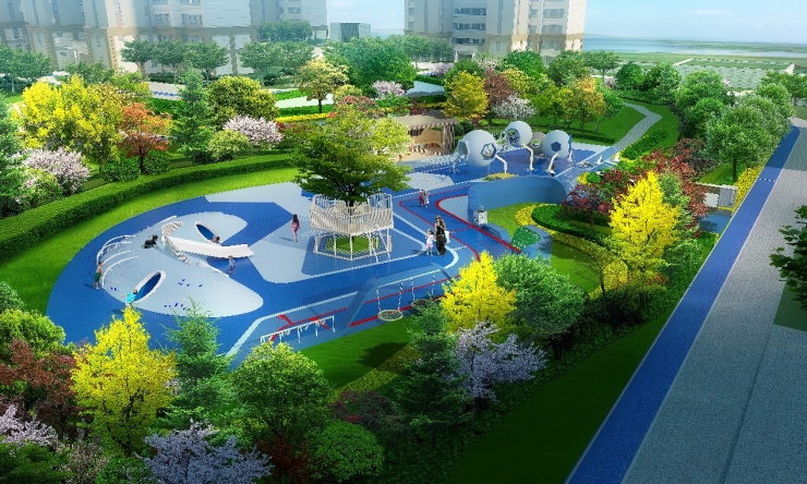 取城市文化背景,融国际健康理念于景观设计之中,构造阳光草坪会客厅、荧光健身跑道、全龄儿童乐园等多功能活动区域,集运动健身、休闲观光、生态园林于一体,打造了更符合大健康时代与城市属性的体育园林。