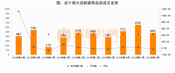 【大连成交周报】第48周新房成交480套,二手房736套,涨价房源1480套
