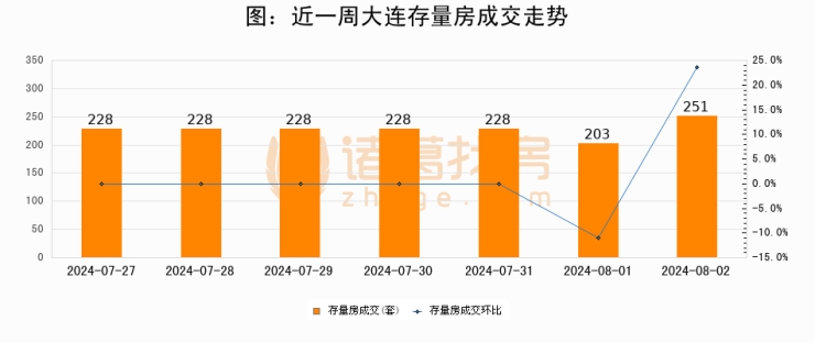 【大连成交日报】08月02日新房成交7套、二手房251套;涨价房源21套