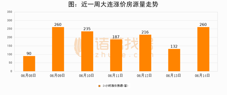 根据诸葛找房数据显示,大连24小时涨价房源量为260套,较06月13日增加128套,环比上涨97%。与此同时,涨价房源占比小幅扩大,业主信心有所提升。