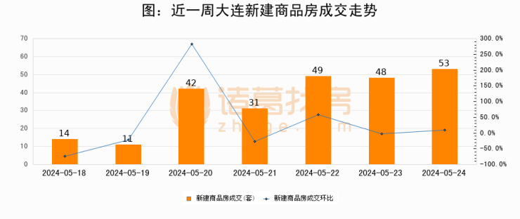 【大连成交日报】05月24日新房成交53套、二手房167套;涨价房源49套