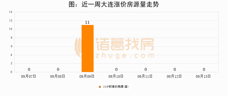 根据诸葛找房数据显示,大连24小时涨价房源量为0套,较09月12日持平。