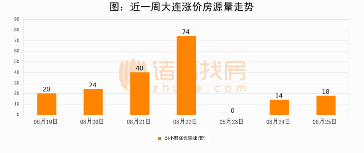 根据诸葛找房数据显示,大连24小时涨价房源量为18套,较08月24日增加4套,环比上涨28.6%。与此同时,涨价房源占比小幅扩大,业主信心有所提升。