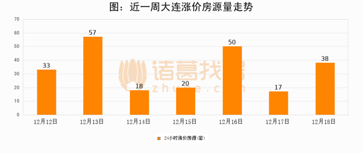 根据诸葛找房数据显示,大连24小时涨价房源量为38套,较12月17日增加21套,环比上涨123.5%。与此同时,涨价房源占比小幅扩大,业主信心有所提升。