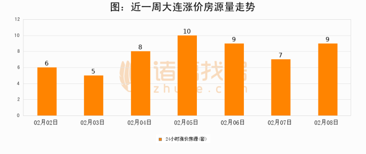 根据诸葛找房数据显示,大连24小时涨价房源量为9套,较02月07日增加2套,环比上涨28.6%。与此同时,涨价房源占比小幅扩大,业主信心有所提升。