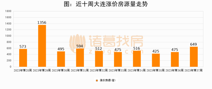 从调价房源来看,第37周大连涨价房源649套,较上周上涨36.6%。与此同时,37周涨价房源占比回落0.6个百分点,业主信心小幅波动,购房者可则需入市。