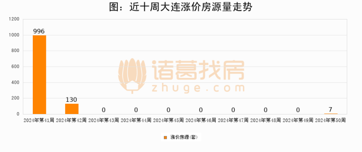 从调价房源来看,第50周大连涨价房源7套,较上周上涨0%。与此同时,50周涨价房源占比回落91.95个百分点,业主信心小幅波动,购房者可则需入市。