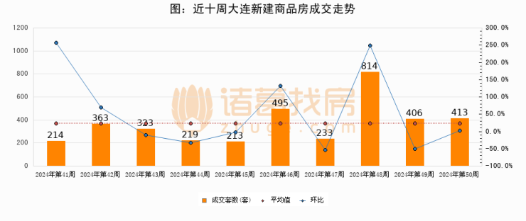 【大连成交周报】第50周新房成交413套,二手房1302套,涨价房源7套