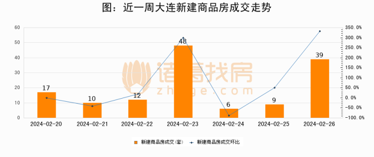 【大连成交日报】02月26日新房成交39套、二手房88套;涨价房源44套