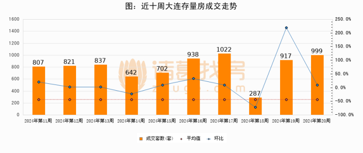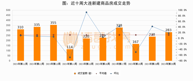 【大连成交周报】第20周新房成交283套,二手房999套,涨价房源415套