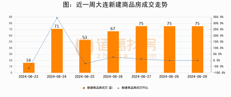 【大连成交日报】06月29日新房成交75套、二手房298套;涨价房源70套