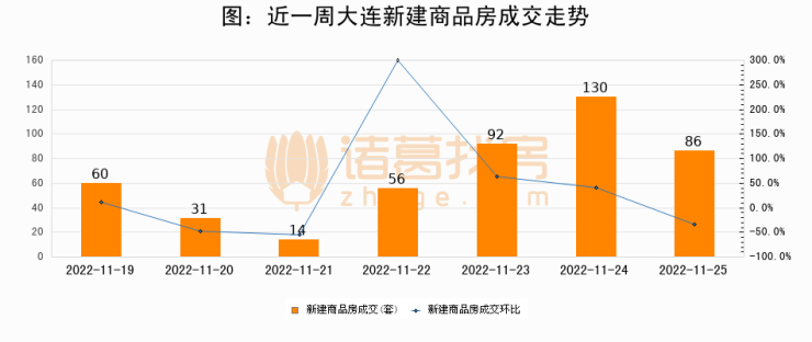 【大连成交日报】11月25日新房成交86套、二手房181套;涨价房源241套