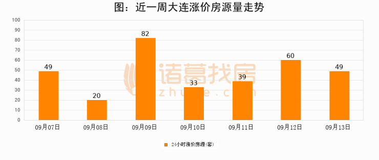 根据诸葛找房数据显示,大连24小时涨价房源量为49套,较09月12日减少11套,环比下降18.3%。与此同时,涨价房源占比小幅回落,对于购房者来说是一个入市窗口期,购房者可抓住时机入市。