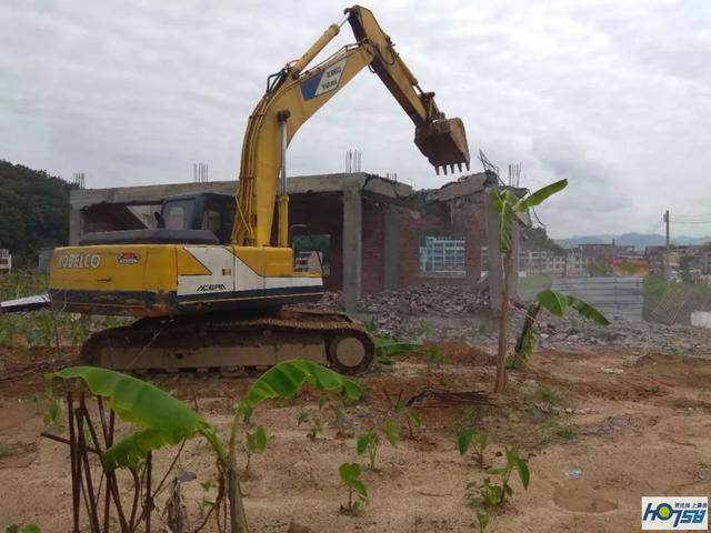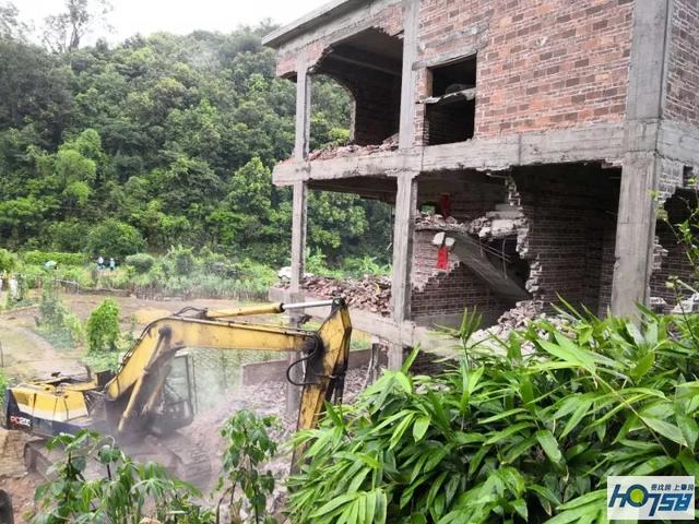 桥头镇1栋一层楼面和1栋刚落地基的违法建筑被依法强制拆除(面积达525平方米)。