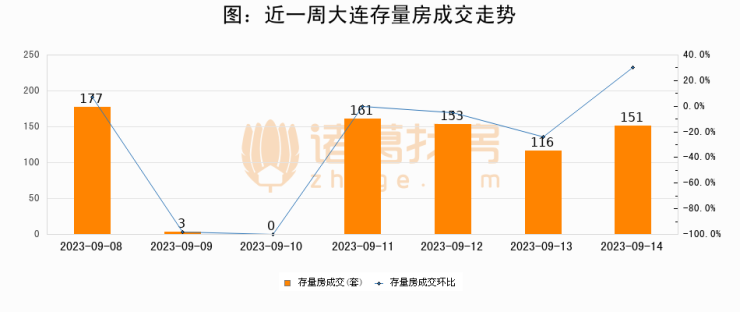 【大连成交日报】09月14日新房成交54套、二手房151套;涨价房源159套