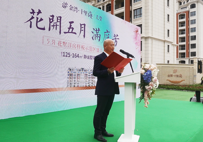 活动伊始,大连金湾实业有限公司总经理陈旭登台致辞,陈总说道,金湾深耕开发区十七载,从金湾新城、金湾又一城到金湾山城,再到金湾·十里海,实现了铸就品质人居的华丽升级,绝美中式园林,鼎级法式洋房是金湾人为大连这座城市量身定制的匠心答卷。