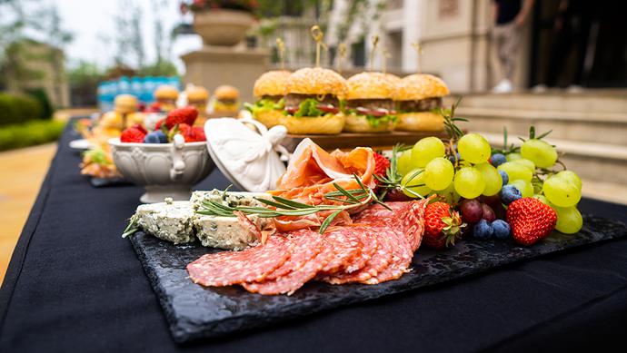 伴着蔷薇的芬芳,嘉宾们步入了一片大美园林,生机盎然的乔木花草与浪漫的坡地、水景、小品优质融合,一步一景,分外别致。