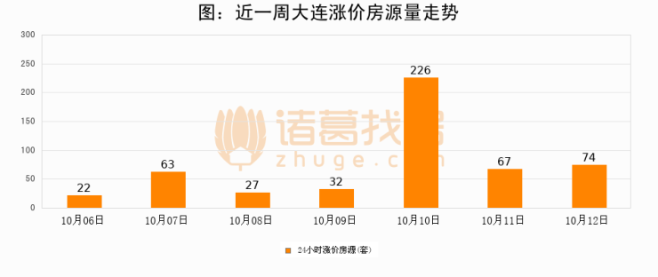 根据诸葛找房数据显示,大连24小时涨价房源量为74套,较10月11日增加7套,环比上涨10.4%。与此同时,涨价房源占比小幅扩大,业主信心有所提升。