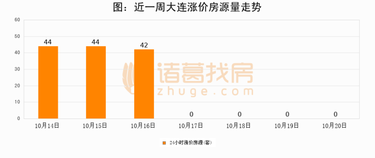 根据诸葛找房数据显示,大连24小时涨价房源量为0套,较10月19日持平。