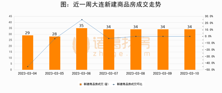 根据大连市住房保障和房屋管理局数据显示,2023年03月10日大连新建商品房成交34套,较昨日持平