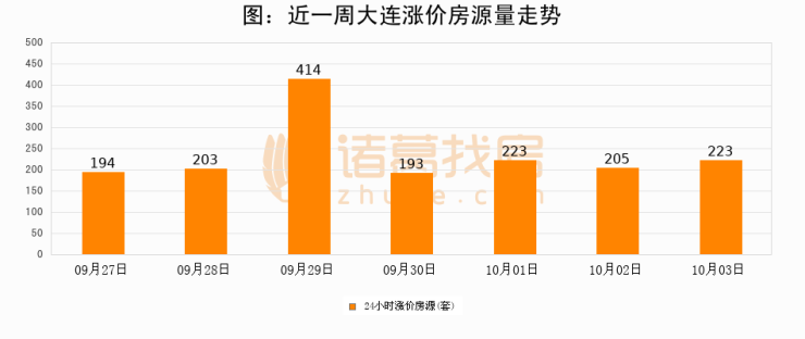 根据诸葛找房数据显示,大连24小时涨价房源量为223套,较10月02日增加18套,环比上涨8.8%。与此同时,涨价房源占比小幅扩大,业主信心有所提升。