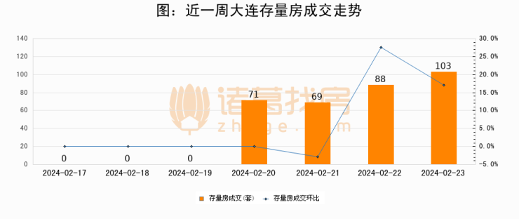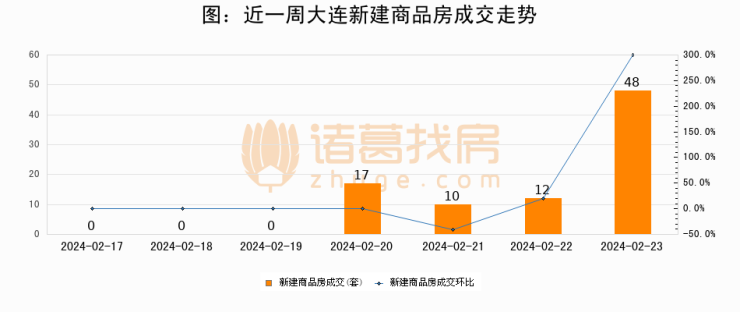 【大连成交日报】02月23日新房成交48套、二手房103套;涨价房源28套