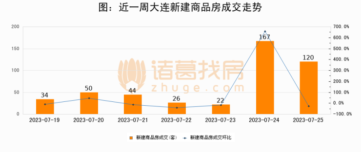 【大连成交日报】07月25日新房成交120套、二手房135套;涨价房源72套