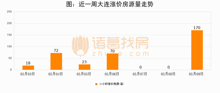 根据诸葛找房数据显示,大连24小时涨价房源量为170套,较05月08日增加170套,环比上涨0%。与此同时,涨价房源占比小幅扩大,业主信心有所提升。