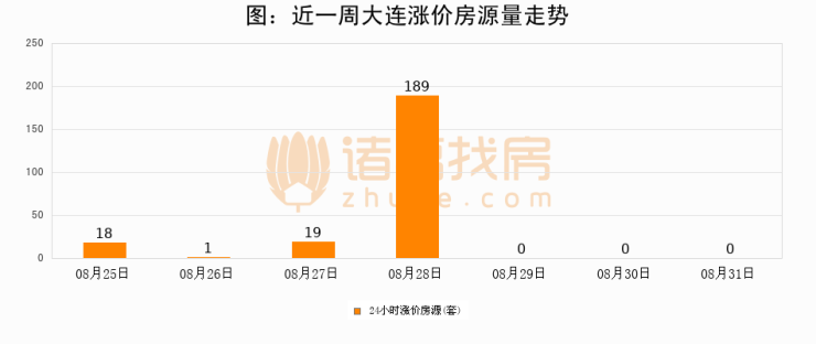 根据诸葛找房数据显示,大连24小时涨价房源量为0套,较08月30日持平。