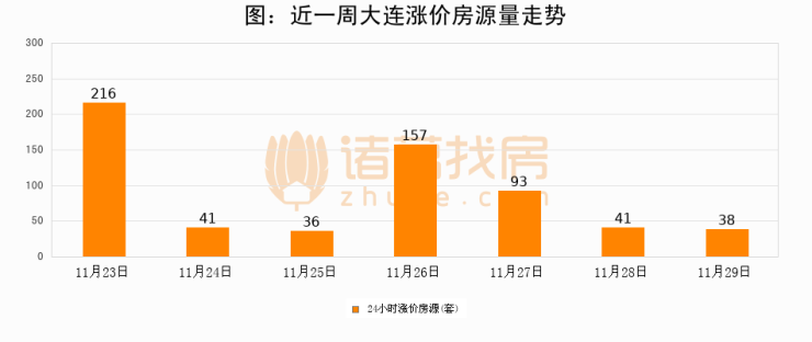 根据诸葛找房数据显示,大连24小时涨价房源量为38套,较11月28日减少3套,环比下降7.3%。与此同时,涨价房源占比小幅回落,对于购房者来说是一个入市窗口期,购房者可抓住时机入市。