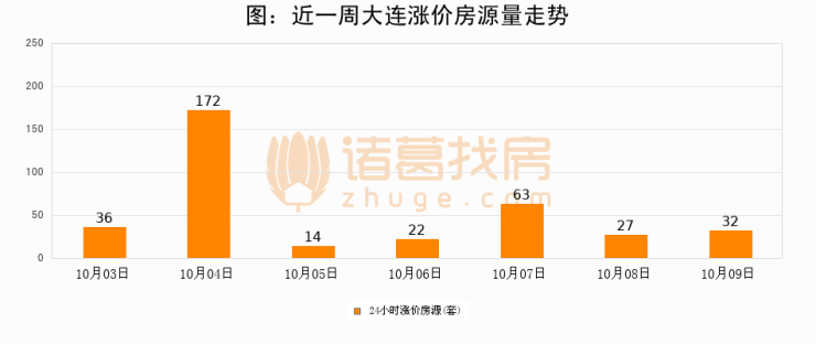 根据诸葛找房数据显示,大连24小时涨价房源量为32套,较10月08日增加5套,环比上涨18.5%。与此同时,涨价房源占比小幅扩大,业主信心有所提升。