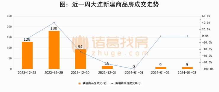 【大连成交日报】01月03日新房成交9套、二手房123套;