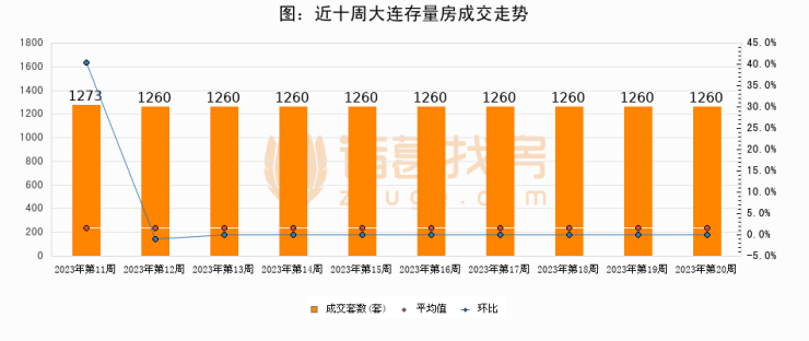 存量房方面,第20周大连存量房成交1260套,较上周持平。从近十周成交走势来看,周均成交套数为1261套,本周低于平均水平0.1%。