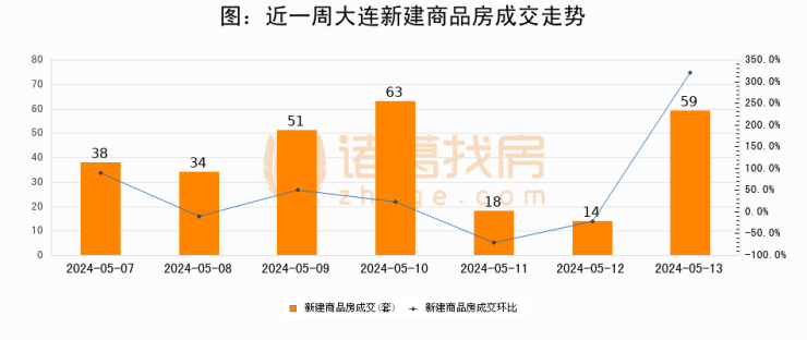 【大连成交日报】05月13日新房成交59套、二手房205套;涨价房源16套
