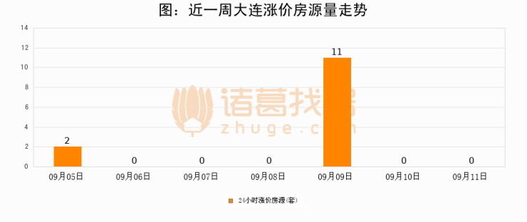 根据诸葛找房数据显示,大连24小时涨价房源量为0套,较09月10日持平。